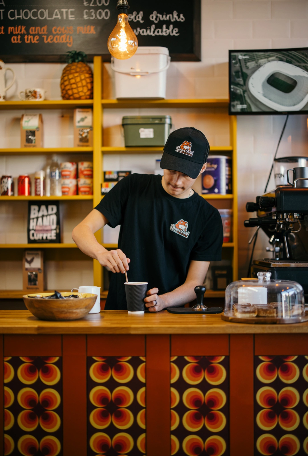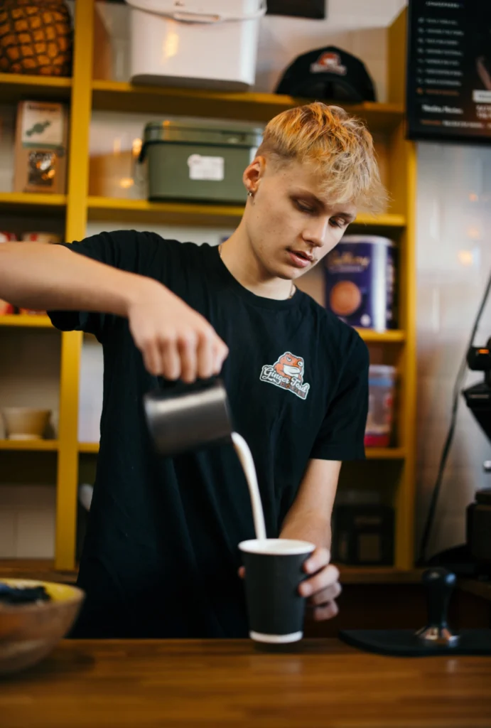 Ginger Toad Coffee was created from a love of good coffee, good people and taking life at a slower, more mindful pace. We believe coffee should be enjoyed, not rushed, thoughtfully brewed and shared in a space that feels warm, welcoming and full of good energy. Our beans are roasted by Bad Hand Coffee and our team are hand trained by them, ensuring every cup is crafted with care, skill and intention.